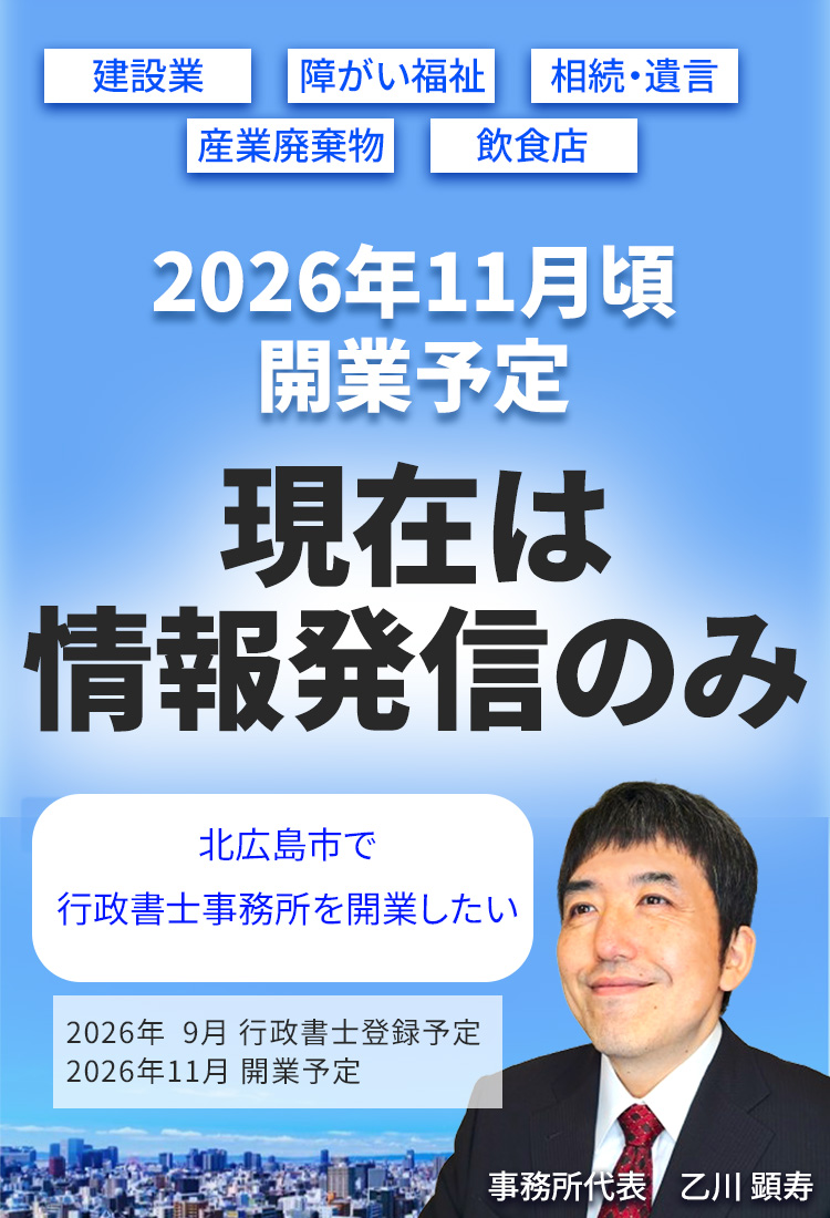 また、行政書士業務については、行政書士登録完了後、法令に基づき適切に対応いたします。