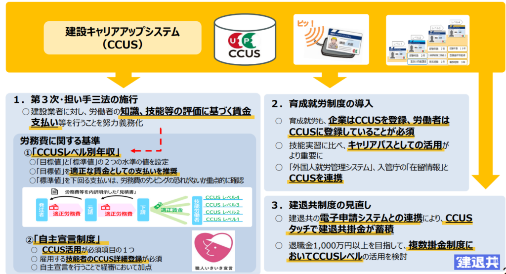 建設業界では現在、技能者の処遇改善と担い手確保に向けた大きな制度改革が進められています。その中核となっているのが、建設キャリアアップシステム(CCUS)による「技能と賃金の見える化」です。