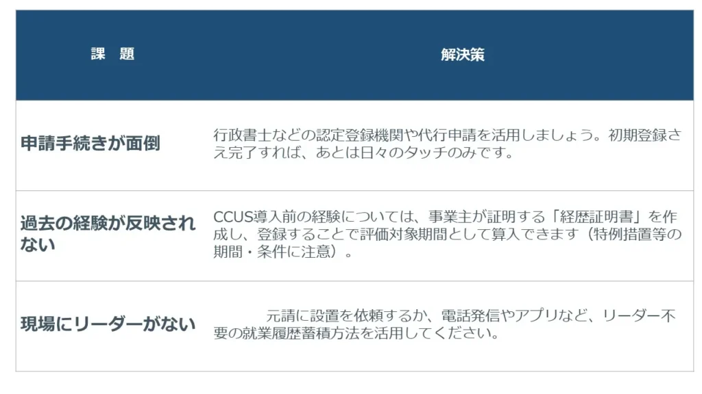 - CCUSのカードリーダー設置など、就業履歴蓄積の環境は整っているか?