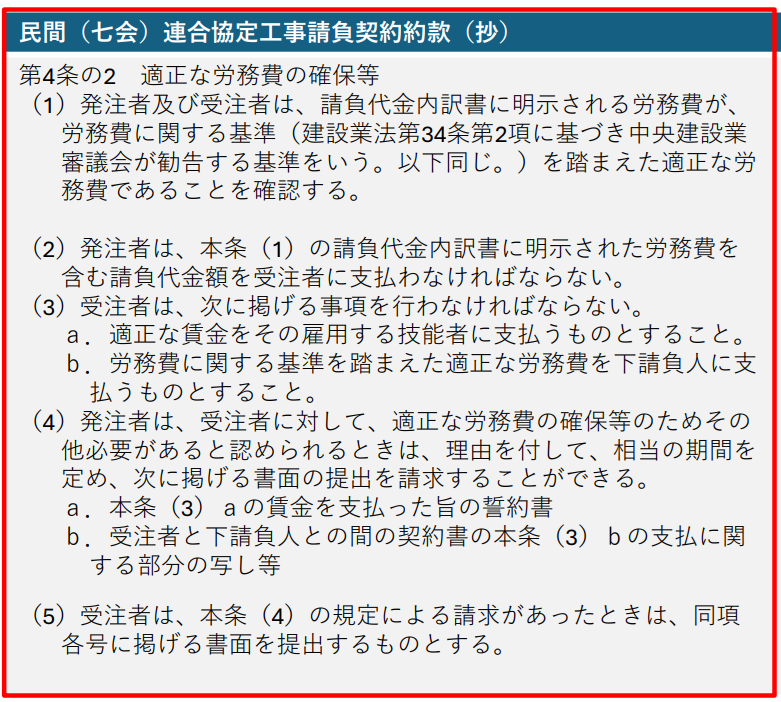4 発注者は、受注者に対して、適正な労務費の確保等のためその他必要があると認められ