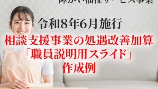 【令和8年6月制度】相談支援事業の処遇改善加算|配分対象職員を決めた後の「職員説明用スライド」作成例