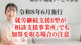 令和8年6月から対象となる相談支援事業所の処遇改善加算について、就労継続支援B型で既に加算を取得している法人が追加申請する場合の参考資料を公開。「障害福祉サービス等処遇改善計画書(記入サンプル)」をもとに、作成のポイントや注意点を解説します。