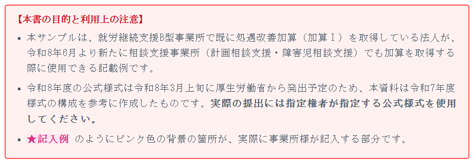 そこで今回は、就労継続支援B型で既に処遇改善加算を取得している法人が、相談支援事業所でも加算取得を目指す場合の参考資料として、